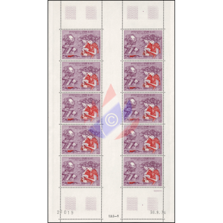 Hier als "POSTFRISCHE (**)" gezahnte Einzelmarke als Kleinbogen, KB(I), mit 10 Marken