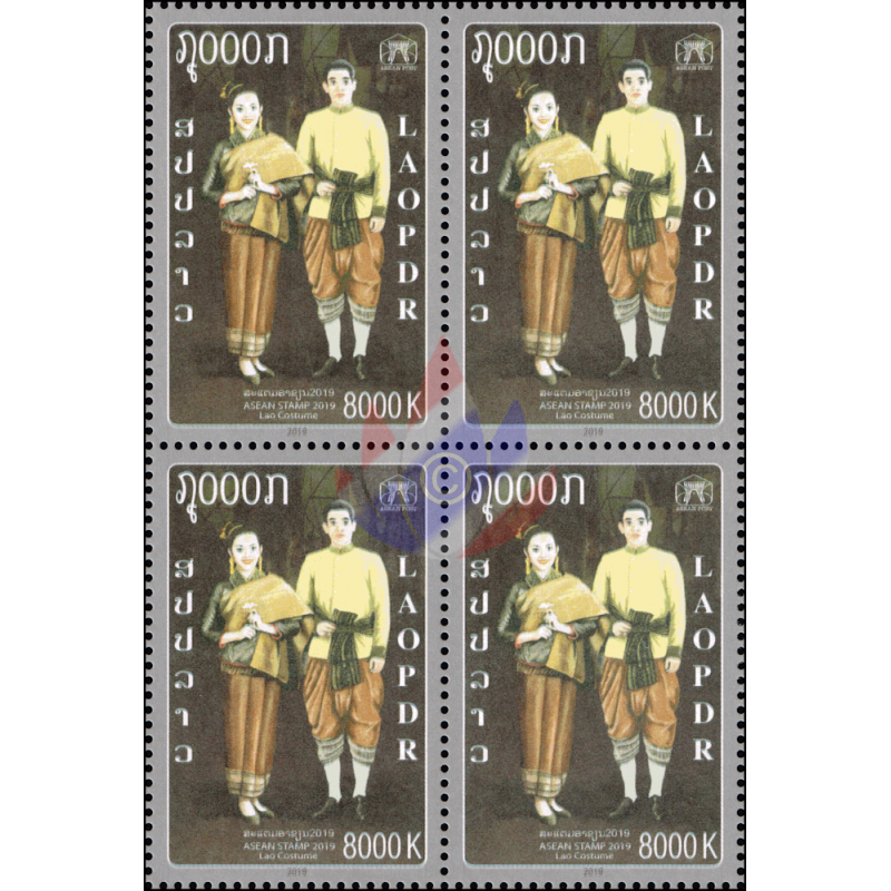 db) Laotisches Paar in Tracht, ASEAN Logo