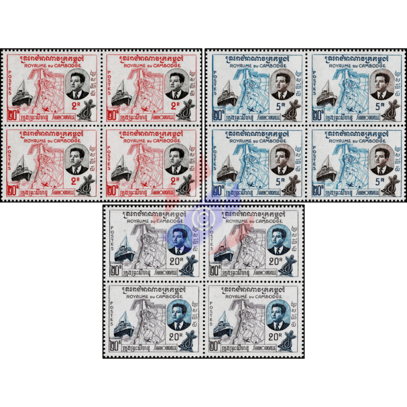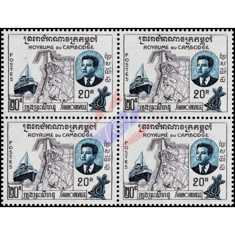aj) Prinz Sihanouk; Stadtplan und Hafen von Sihanoukville, Dampfer "Prinz Sihanouk"
