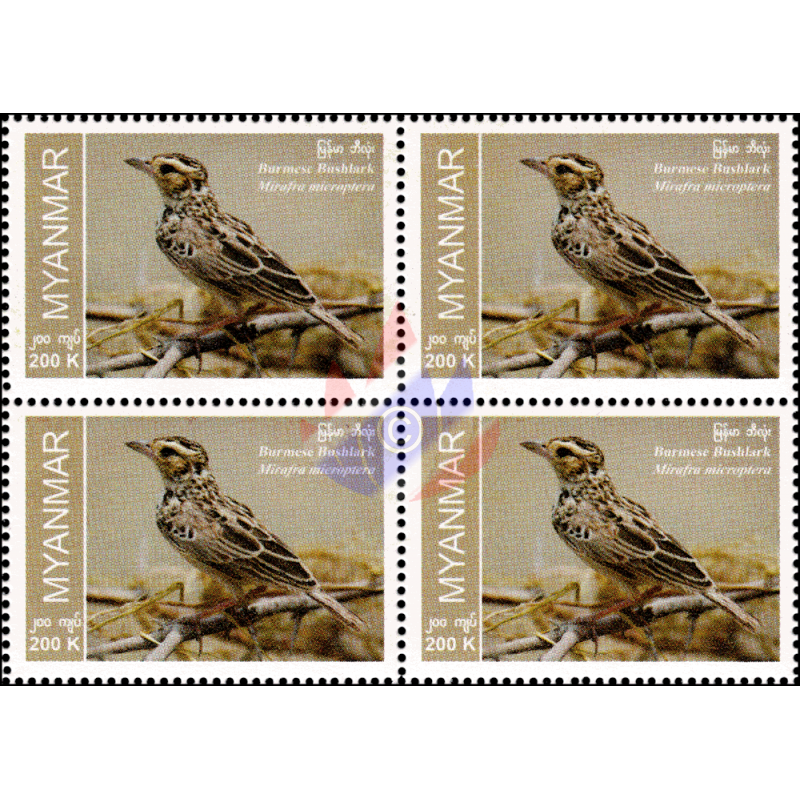 - The Burma Bushlark (Mirafra microptera) is a species of the lark family. Its distribution area is in Southeast Asia. It was originally classified as a subspecies of the Bengal lark. Due to differences in song, it is now classified as a separate species.