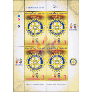 Hier als "POSTFRISCHER (**)" Sonderkleinbogen mit 4 x MiNr. 3204 des Rotary International Thailand mit 4-stelliger Zählnummer "3360", Bogenrand rechts komplett gezahnt (RNG)