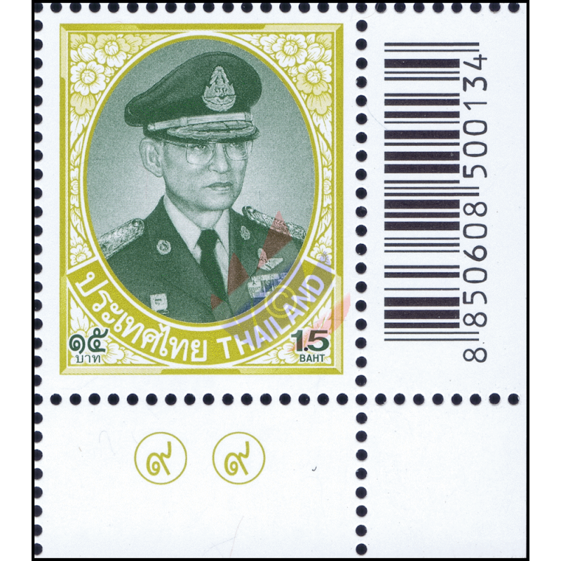 • A 2-baht stamp with the same design, but with a multicolored stamp image, comes from postcards with a perforated postage stamp.