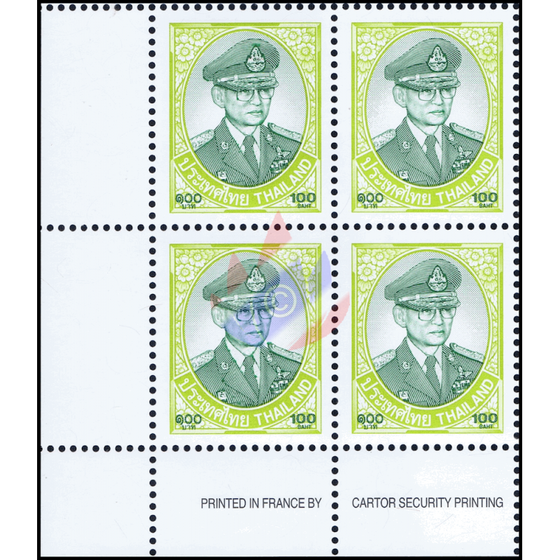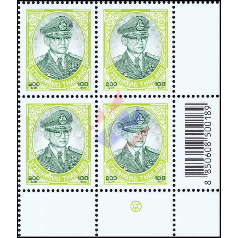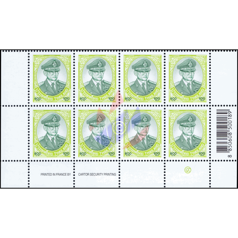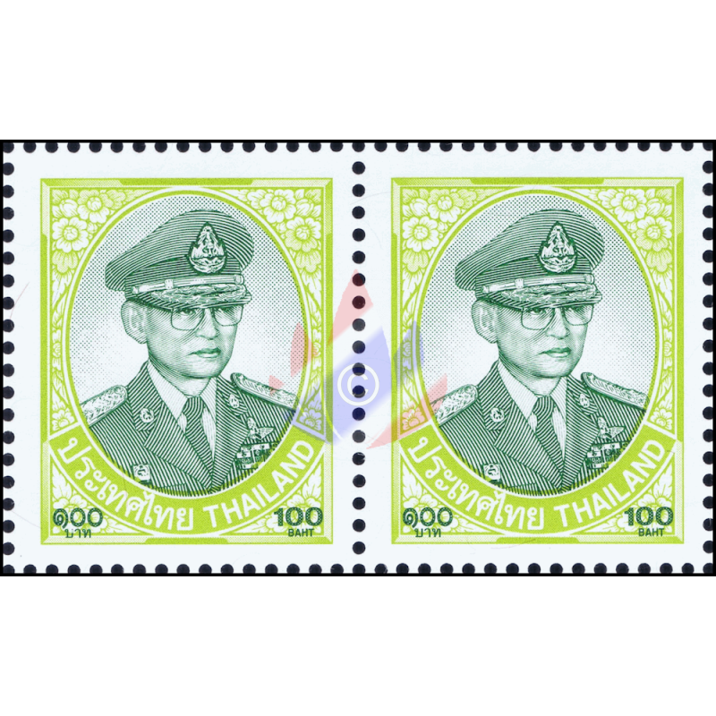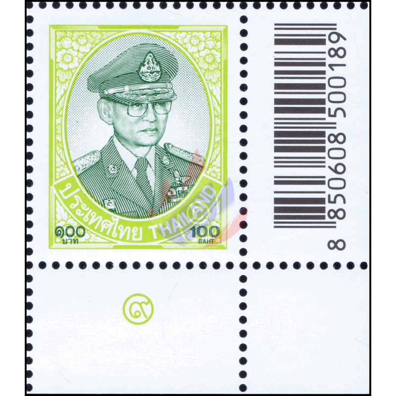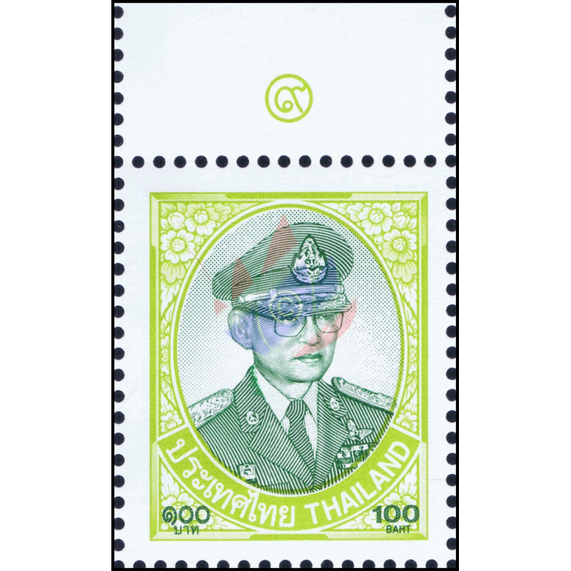 - Eine 2-Baht-Marke in gleicher Zeichnung, jedoch mit mehrfarbigem Markenbild, stammt aus Postkarten mit gezähntem Wertstempel
