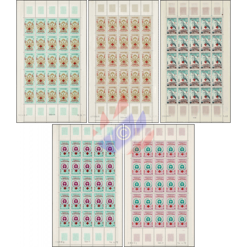 Here as a "MINT NEVER HINGED (MNH)" perforated set with red imprint "SECOURS AUX / VICTIMS DE GUERRE"