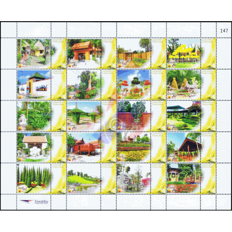 Hier als "POSTFRISCHER (**)" 3-teiliger personalisierter Sonderbogen mit je 20 x MiNr. 2958II-2960II und je 20 x personalisierten Zierfeldern mit Sehenswürdigkeiten, Gärten, Bauwerken aus Thailand vom 05.10.2013.