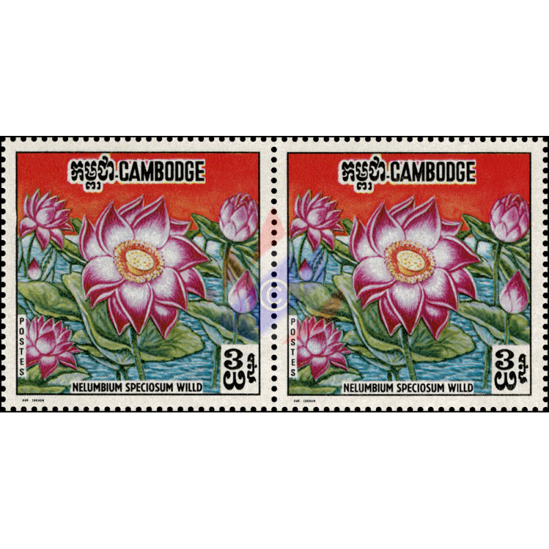 Hier als "POSTFRISCHE (**)" gezahnte Einzelmarke mit vertauschter Kambodschanischer und Arabischer Wertziffer als Paar