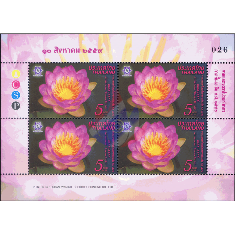 - Anläßlich der Ernennung von Königin Sirikit zur "Beschützerin der Thailändischen Biodiversität" wurde von der Botanischen Gesellschaft Thailand, deren Schirmherrin sie ist, die neue Wasserlilien Art "Hybrid Nymphaea Königin Sirikit" nach ihr benannt. Diese Lotus Kreuzung hat Pairat Songpanich, ein Pflanzenspezialist der Landwirtschaftlichen Abteilung, über 4 Jahre hinweg entwickelt. Jeder Lotus hat 24 Blütenblätter , die alle an der Spitze lila und weiß an ihrer Basis sind, während die Kelchblätter grün und weiß sind. Dieser schöne Lotus wurde ausgewählt als Thema der diesjärigen 32. Asien Briefmarken Ausstellung2016