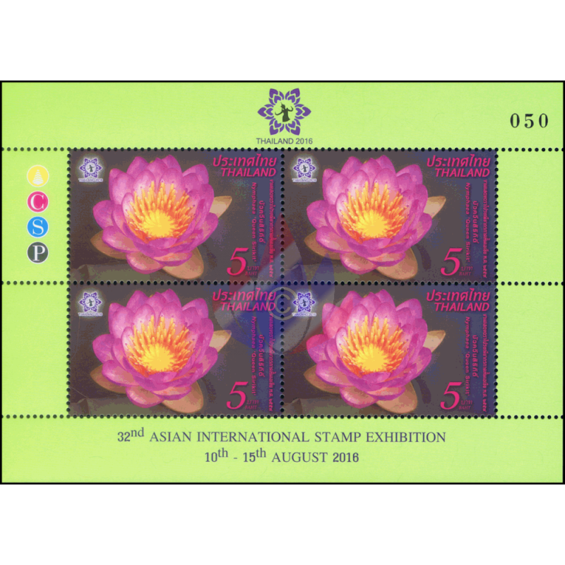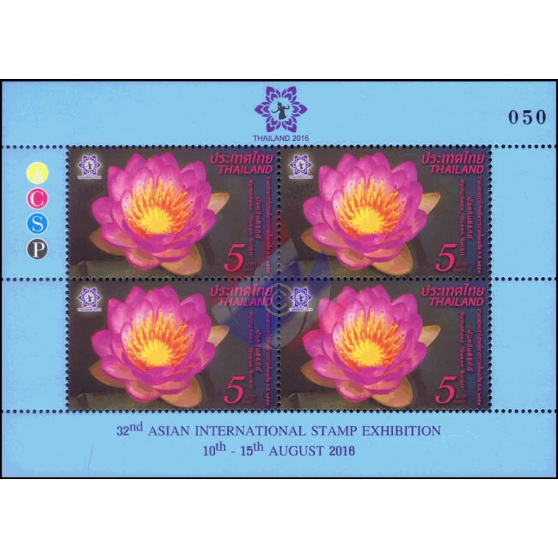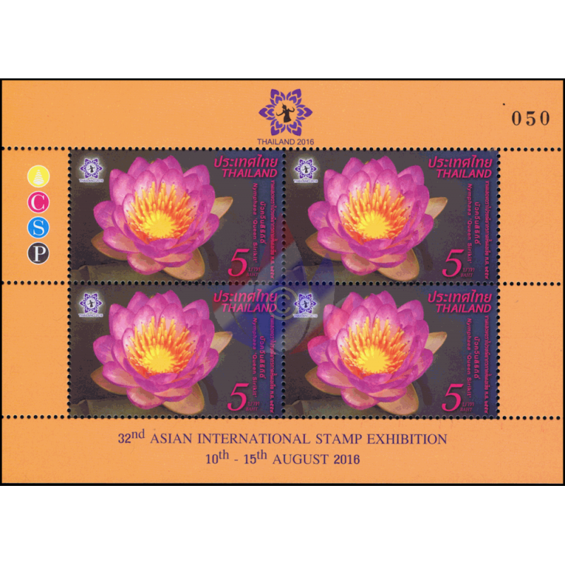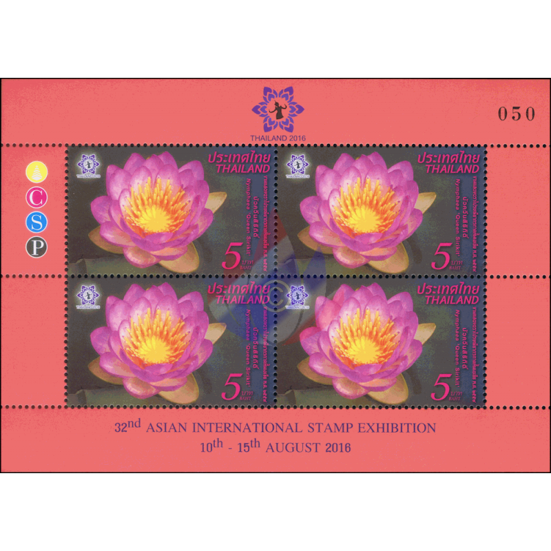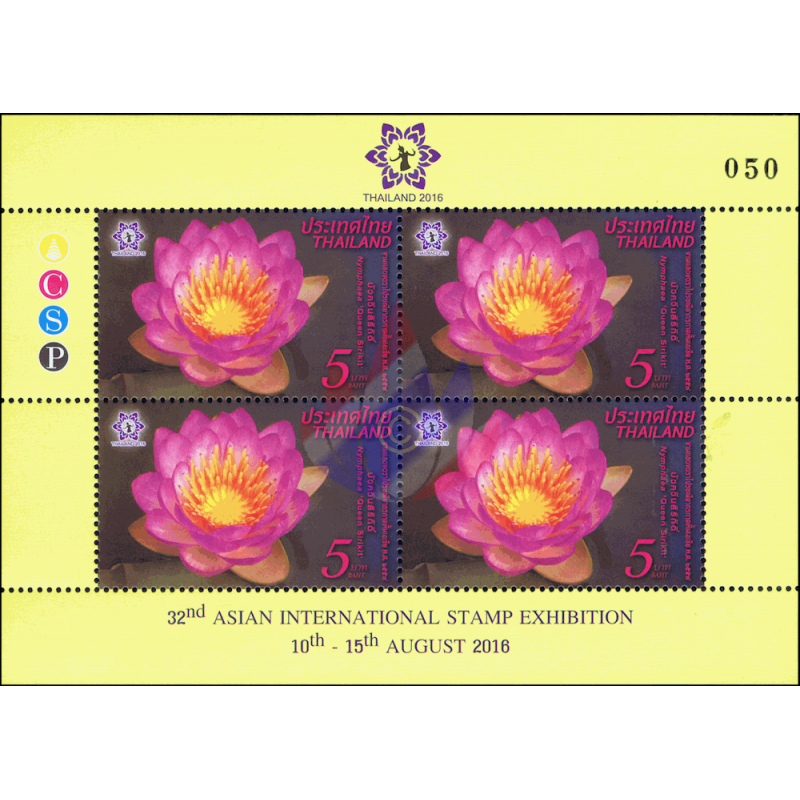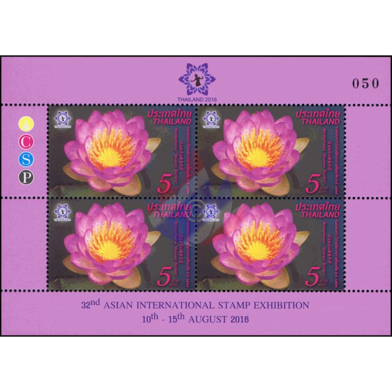 - Anläßlich der Ernennung von Königin Sirikit zur "Beschützerin der Thailändischen Biodiversität" wurde von der Botanischen Gesellschaft Thailand, deren Schirmherrin sie ist, die neue Wasserlilien Art "Hybrid Nymphaea Königin Sirikit" nach ihr benannt. Diese Lotus Kreuzung hat Pairat Songpanich, ein Pflanzenspezialist der Landwirtschaftlichen Abteilung, über 4 Jahre hinweg entwickelt. Jeder Lotus hat 24 Blütenblätter , die alle an der Spitze lila und weiß an ihrer Basis sind, während die Kelchblätter grün und weiß sind. Dieser schöne Lotus wurde ausgewählt als Thema der diesjärigen 32. Asien Briefmarken Ausstellung2016
